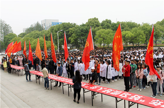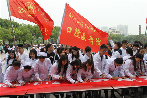 4月26日下午,学校在东区综合楼前广场举行“拒绝不良贷款倡导理性消费”大型签名活动。学校副校长杨立明、学工部(处)负责人沈建林、保卫处负责人罗唯、学工部(处)全体工作人员及各教学院1000多名学生代表参加了此次活动。学生代表美容学院王嘉怡同学宣读了“自觉抵制不良贷款”倡议书。