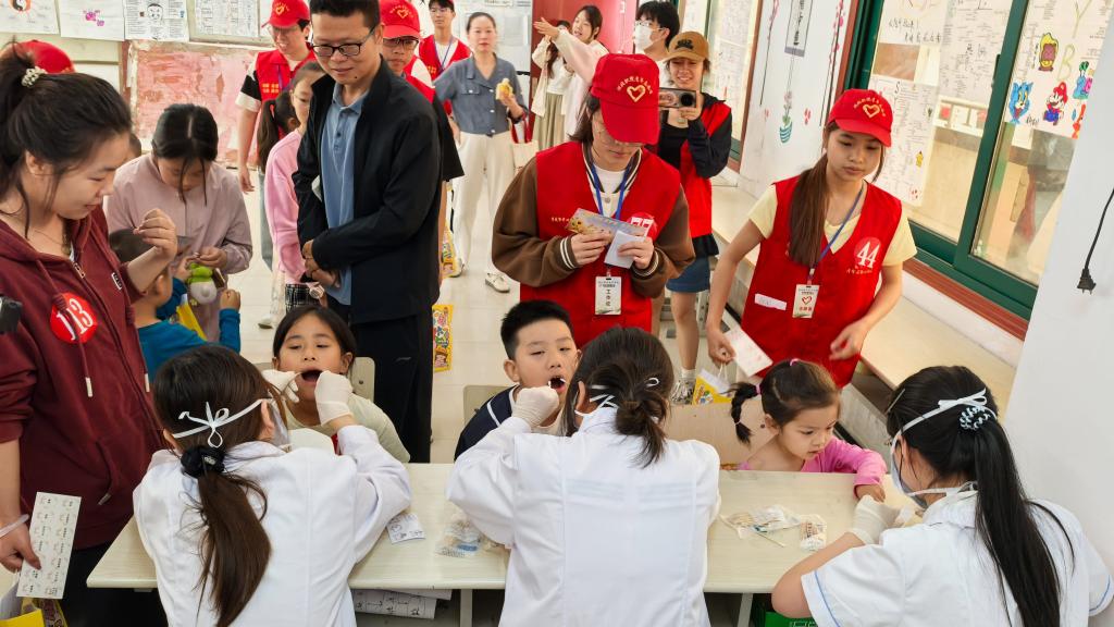 清晨九时的德艺楼前,身着红色马甲的校青协志愿者们手持活动地图,为每个家庭开启集章打卡的趣味旅程。口腔医学院特别打造的"微笑守护营"成为活动亮点,通过播放刷牙动画、口腔义诊、开展巴氏刷牙法教学,带领亲子家庭在牙齿模型上实操演练。"原来后牙要竖着刷才能清洁到位!"参与教学的孩子们举着牙刷模型兴奋不已,家长们纷纷表示这类科普活动既实用又有趣。