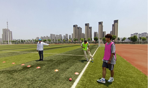 (本网讯 杨洋 阿依提拉·麦麦提敏)5月28日下午,南区田径场,我校蹴球培训交流对抗赛激情开赛。经过培训组多轮选拔的优胜代表护理学院蹴球队杨宇皓、财经与旅游学院蹴球队艾孜海尔(男子组),信息工程学院阿依提拉、财经与旅游学院田源(女子组)等齐聚绿茵场,向胜利发起最后的冲击。本次比赛由我校体育部蹴球指导教师杨洋老师担任裁判及现场解说。