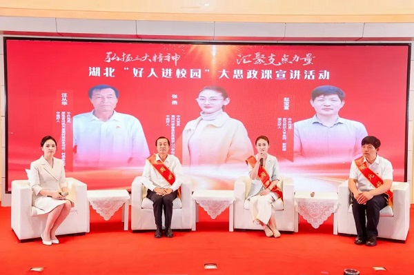 (本网讯 陈灏)6月17日下午,我校师生线上参加省委宣传部、省文明办、省委讲师团、省教育厅主办的“弘扬三大精神 汇聚支点力量”——湖北“好人进校园”大思政课宣讲活动。精彩的“好人进校园”大思政课春风化雨,师生在感动中读懂“三大精神”密码,让社会主义核心价值观在澴水之滨生根发芽,让“群星现象”在新时代绽放耀眼光芒,为加快建成支点凝聚强大精神力量。