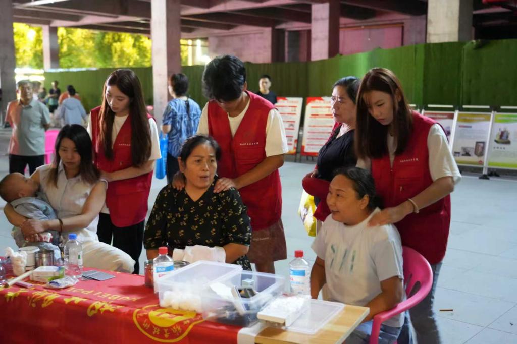 “医生,我最近总觉得脖子疼、肩膀酸,是不是得了颈椎病啊?”在健康服务专区,卫生技术学院的志愿者们刚摆好诊疗床、拔罐器、针灸针等器材,就围满了前来咨询的居民。志愿者们首先为居民测量血压、询问身体状况,再根据具体症状提供针对性服务。