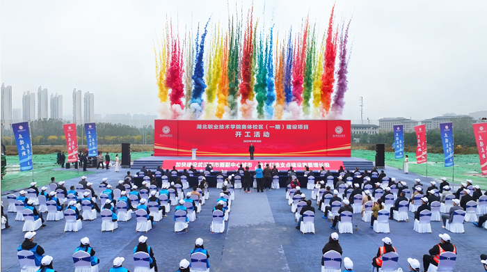 (本网讯 陈灏 李涛 岑钰)秋高气爽,叠翠流金。10月30日上午,湖北职院奥体校区(一期)建设项目开工。市委常委、宣传部部长吴琼宣布项目开工,副市长朱江为项目建设单位颁发“五证”。校党委书记郭国文致辞,校长郭沙主持活动。市政府副秘书长蒋伟,市委宣传部副部长张莉,市教育局长胡明刚等出席活动。孝南区政府、市高新区管委会、市发改委、市财政局、市自然资源和城乡建设局、市住房和城市更新局、市供电公司分管负责人,全体在校校领导、中层正职干部,施工单位、设计单位、监理单位、造价单位、勘察单位相关同志参加活动。