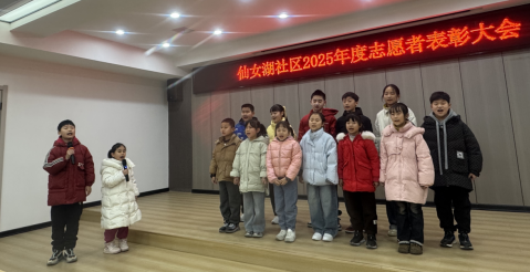 “听我说谢谢你,因为有你,温暖了四季……”来自社区“周末学堂”的孩子们用稚嫩的歌声献上感恩之歌,为现场增添了浓厚的温情。表彰环节中,我院2名大学生志愿者获评“优秀志愿者奖”,2名指导老师荣获“优秀指导老师奖”,另有3名参与“周末学堂”的学员斩获“优秀学员奖”。