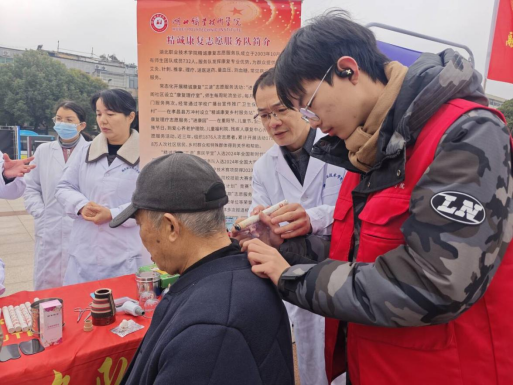 前来体验服务的市民络绎不绝,志愿者为市民熟练提供推拿、针灸、艾灸、刮痧等传统中医理疗服务,手法娴熟、服务细致。卫生技术学院许智教授、专业带头人罗萍教授、社团指导教师陈志伍等耐心解答群众提出的常见病预防、日常保健、慢病管理等健康问题。针对老年群体,志愿者细心为他们测血压、量血糖,关切询问身体状况,结合专业知识给予科学建议,真正做到健康服务零距离。