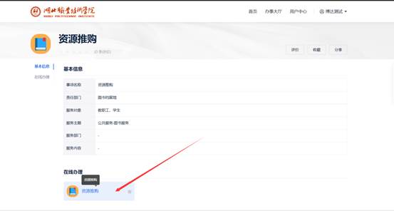 (3)服务【图书服务】→【资源推购】进入应用