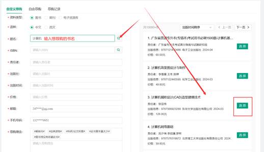 自定义荐购以图书为例:【期刊、电子资源库】操作同理