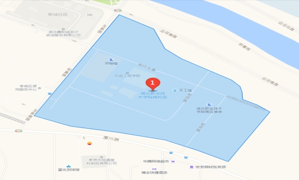 湖北职业技术学院南校区知行楼(孝感市孝南区玉泉路17号老澴河以南,孝南区便民服务中心斜对面)。