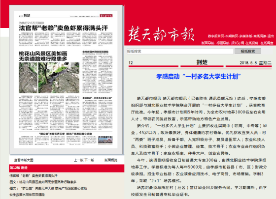 【楚天都市报】孝感启动“一村多名大学生计划”