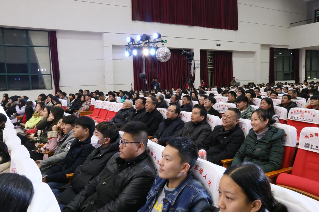 学校先进典型模范代表左德汉、谭之平,学校党委宣传部、学工处团委等部门负责人、各二级学院基层党组织书记、学管副院长、辅导员代表、本届校园文化活动先进集体及个人,以及各教学院学生干部等近千人参加了大会。