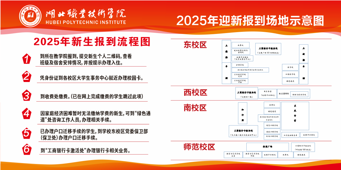 缘聚文化高地铸牢共同体德技并修,奋进工匠摇篮齐圆复兴梦成才报国。热烈欢迎加入湖北职业技术学院这个温暖的大家庭!为了帮助大家顺利报到、融入校园生活,这份2025级新生入学攻略,请查收!