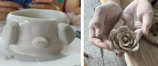 课程特别设置了泥球成型法、泥条盘筑法、泥板成型法等专题模块,全方位锻炼学生的立体造型能力和空间构思能力,将所学技法与个人创意相结合,完成独具特色的陶艺作品。