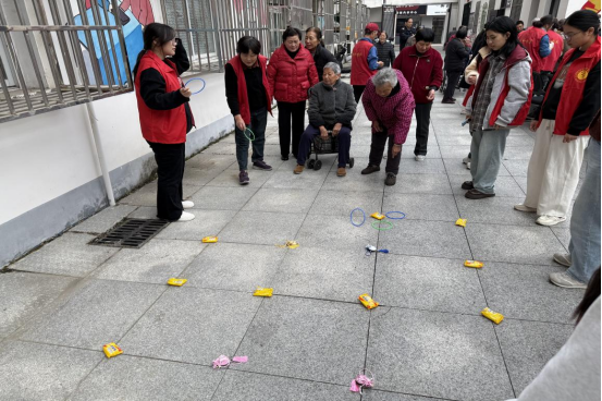 “套圈小游戏”区域欢声笑语不断。一位奶奶成功套中后,高兴地拍手:“哈哈,套中啦!”,向大家展示自己赢得的奖品。游戏让老人们重拾童趣,现场其乐融融。