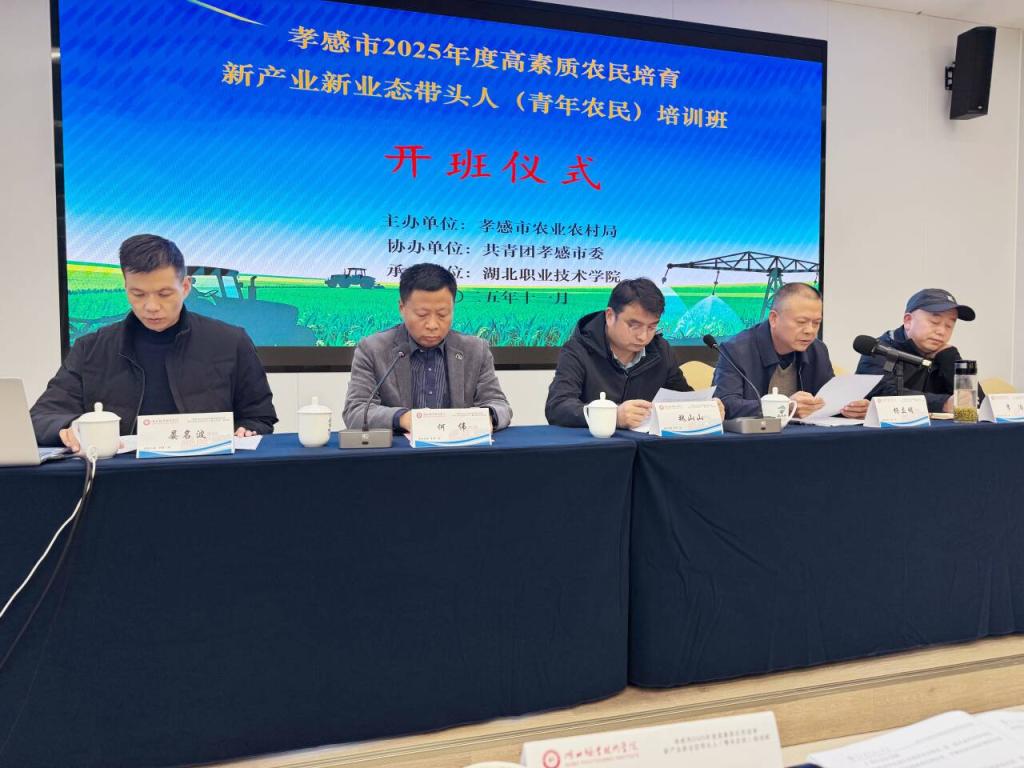 (本网讯 丁璐 )11月10日,由孝感市农业农村局、共青团孝感市委联合主办,湖北职业技术学院承办的“孝感市2025年高素质农民教育培育项目新产业新业态带头人(青年农民)培训班”在孝昌县农夫子教育培训中心开班。来自全市各县(市、区)的返乡创业大学生、青年家庭农场经营者及农村合作社骨干50余名青年农民齐聚一堂,开启为期10天的集中学习深造。共青团孝感市委副书记魏山山,湖北职业技术学院副校长杨立明,孝感市农业农村局社会事业促进科科长李浩,共青团孝感市委青发部负责人晏名波等出席活动,开班式由口腔医学院院长何伟主持。
