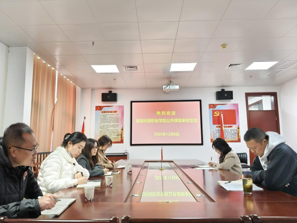 (本网讯 胡巍)12月8日上午,湖北科技职业学院公共课教学部副主任陈玲率数学学科带头人吴珊、公共课教研室主任郭蕾吟、体育教研室主任王军力一行四人来我校公共课部、体育部开展公共课程学科建设专题交流。