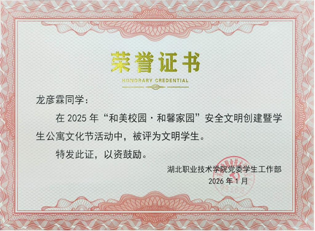 (本网讯 陈泽华)一颗民族团结、互嵌共融的“种子”,在7岁时,播撒在天山脚下;13年后,这颗种子在湖北职业技术学院的美丽校园里,结出了名为“担当”的果实。信息工程学院2025级信息安全应用技术专业的龙彦霖,在中华孝文化名城,续写着“中华民族一家亲 感恩奋进石榴红”的新篇章。