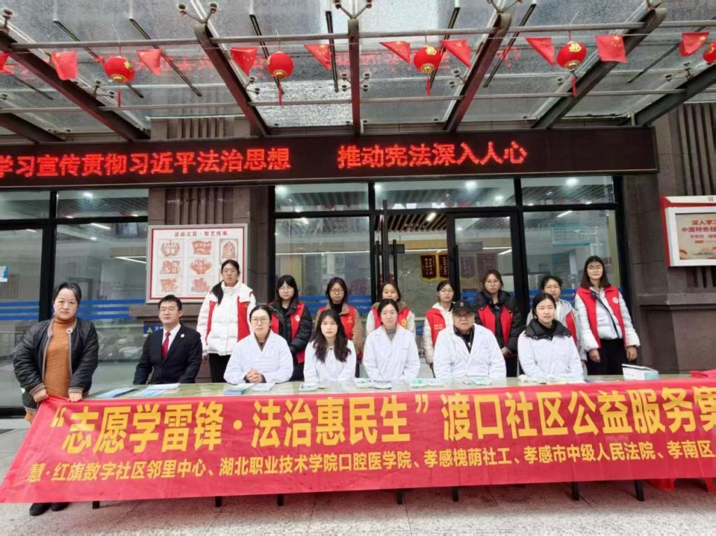 (本网讯 秦玉婷 陈瑾)三月春风暖人心,雷锋精神永传承。在3月20日,口腔医学院联合渡口社区、法院等单位,共同开展“志愿学雷锋·法治惠民生”主题志愿服务活动,以专业服务传递温暖,用实际行动践行雷锋精神。
