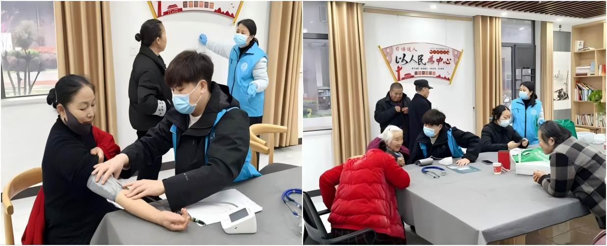 便民服务岗上:志愿者们主动协助社区开展便民服务,协助社区志愿者为老人测量血压、维持现场秩序,同时配合社区工作人员完成免费磨刀、理发等暖心服务,让居民切实感受到志愿服务的温度。
