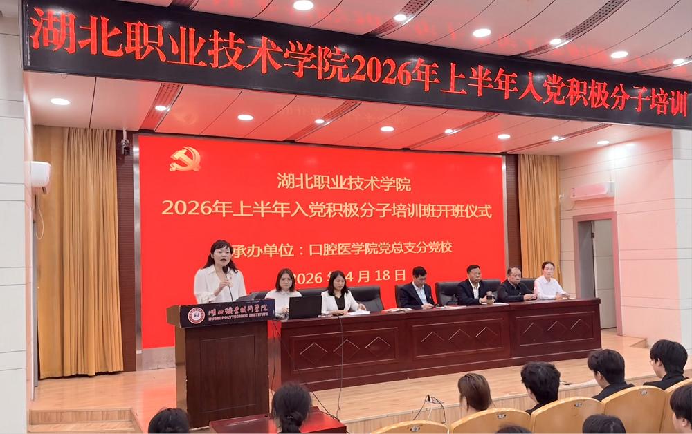 据悉,本次入党积极分子培训班课程内容丰富、重点突出、针对性强。此次开班仪式的顺利举行,标志着学校2026年上半年入党积极分子培训工作正式启动,也为承办单位口腔医学院搭建了展示学院党建工作成效、彰显口腔青年风采的平台。全体入党积极分子将以此次培训为新起点,认真学习党的创新理论,锤炼过硬本领,在青春赛道上奋力奔跑,用实际行动书写属于湖北职业技术学院青年的青春答卷,为实现中华民族伟大复兴的中国梦贡献青春力量。