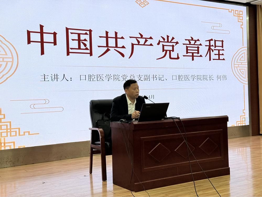 开班仪式结束后,现场随即开展专题授课。口腔医学院党总支副书记、院长何伟带领学员深入学习《中国共产党章程》,通过系统讲解党的理论知识与根本遵循,帮助全体积极分子进一步筑牢信仰之基、补足精神之钙、把稳思想之舵。