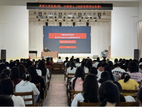 (本网讯 李璇)当创新创业的激情遇见传统艺术的底蕴,美育便有了时代的回响。4月26日晚,教育与艺术学院2026年“美育大讲堂”第2期在师范校区大礼堂举行。学院院长肖成林主持活动,艺术学博士、清华大学美术学院研修学者、青岛黄海学院戏剧影视美术设计专业带头人叶辉老师应邀作题为《创新思维带动竞赛——数字时代以设计的力量重塑传统艺术》的专题讲座,学院师生代表300余人到场聆听。