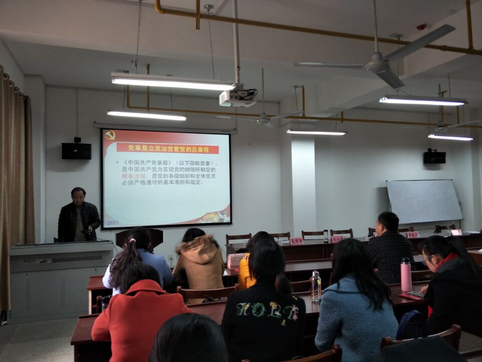 会上,医学院副院长程曙文同志传达了学校2017年上半年政治理论学习计划及相关要求,通报了2016年党费缴纳、使用情况;口腔医学院副院长高想清对十八大新党章进行了概述、解读,介绍了新党章的学习方法。