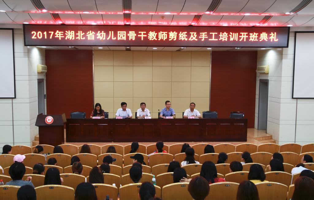 7月10日,湖北省2017年幼儿教师手工及雕花剪纸技能培训班在学校文博馆学术报告厅顺利开班,副校长刘发兴、孝感市教育局继教中心负责人罗先伟等出席了开班仪式。学校继教学院、教育与艺术学院相关同志,来自孝感市9所幼儿园的100名幼儿教师参加了开班仪式,并聆听了首场专家讲座。开班仪式由学校继续教育学院负责人林文学主持。